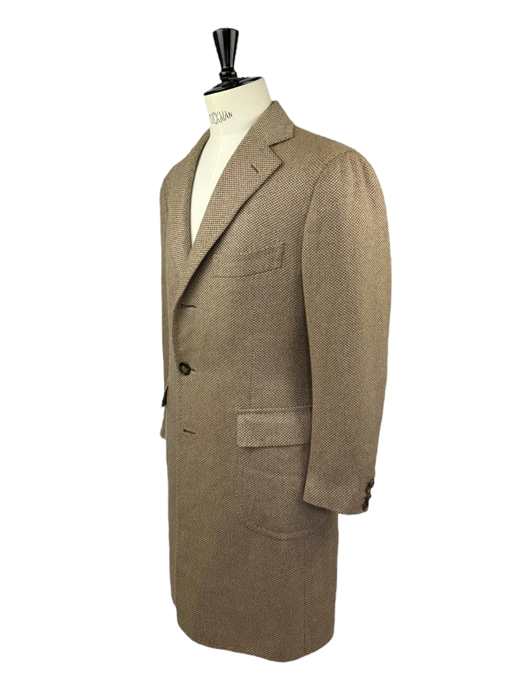 Handcrafted in Naples by Cesare Attolini’s skilled artisans, this overcoat exemplifies the brand’s commitment to traditional tailoring techniques. The use of camel hair brings a host of benefits—naturally insulating, lightweight, and breathable, it’s perfect for wearing across seasons. Each detail, from the spalla camicia construction to the hand-sewn seams, reflects Attolini’s unwavering dedication to creating garments with both comfort and longevity in mind. This is a piece that not only exudes sophistication but also stands the test of time. Discover the elaborated sartorial details below.